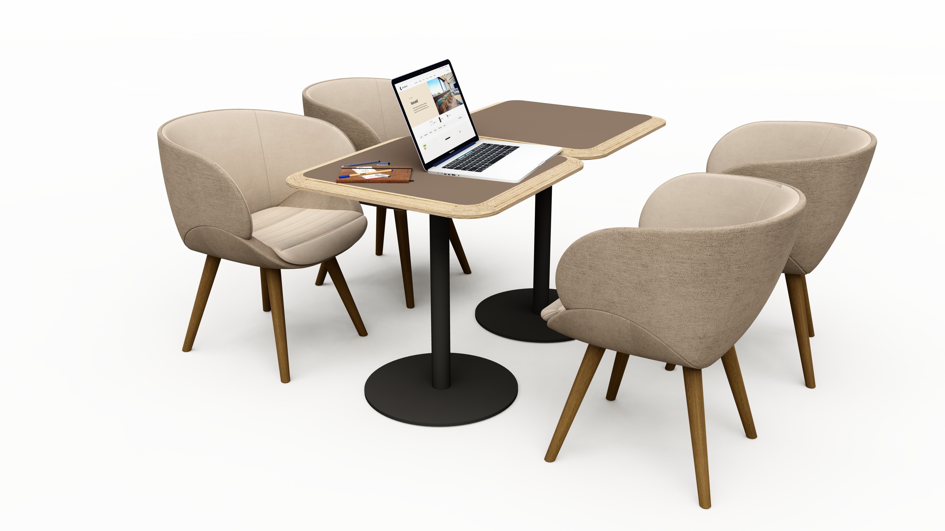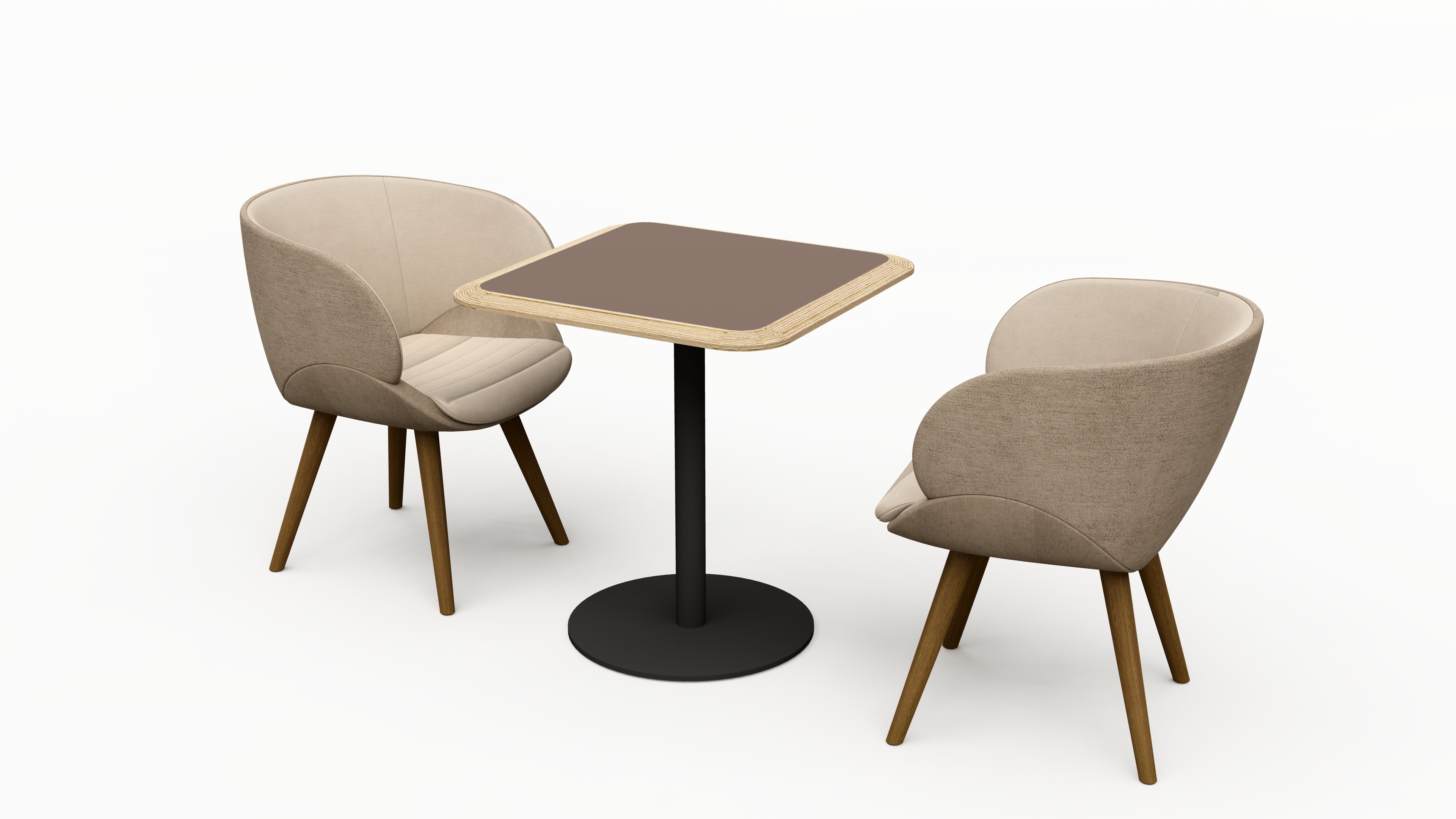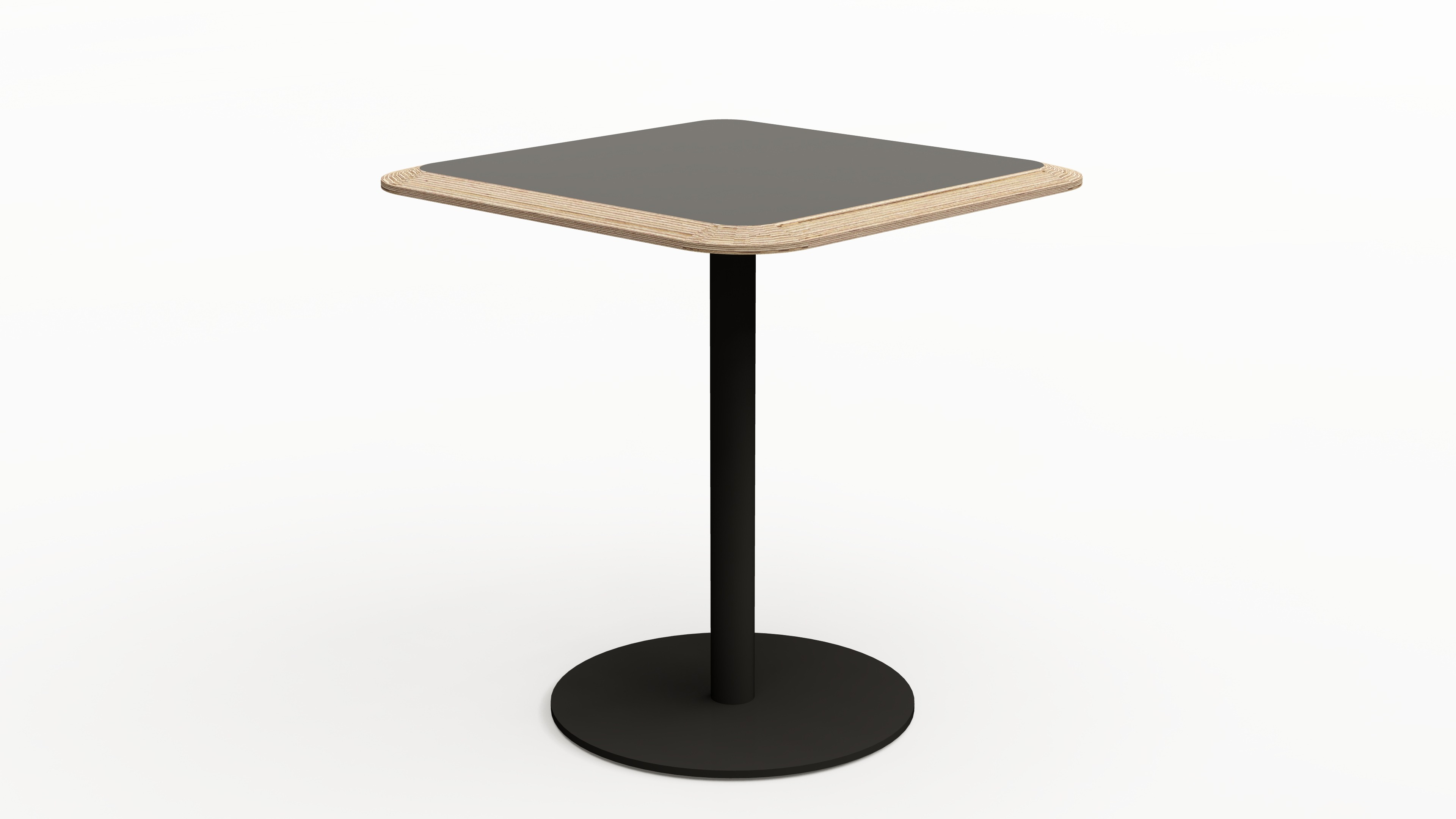 Malý stůl STANDY se čtvercovou deskou a kulatou podnoží je vhodný do firemní zasedačky, jídelny nebo recepce.