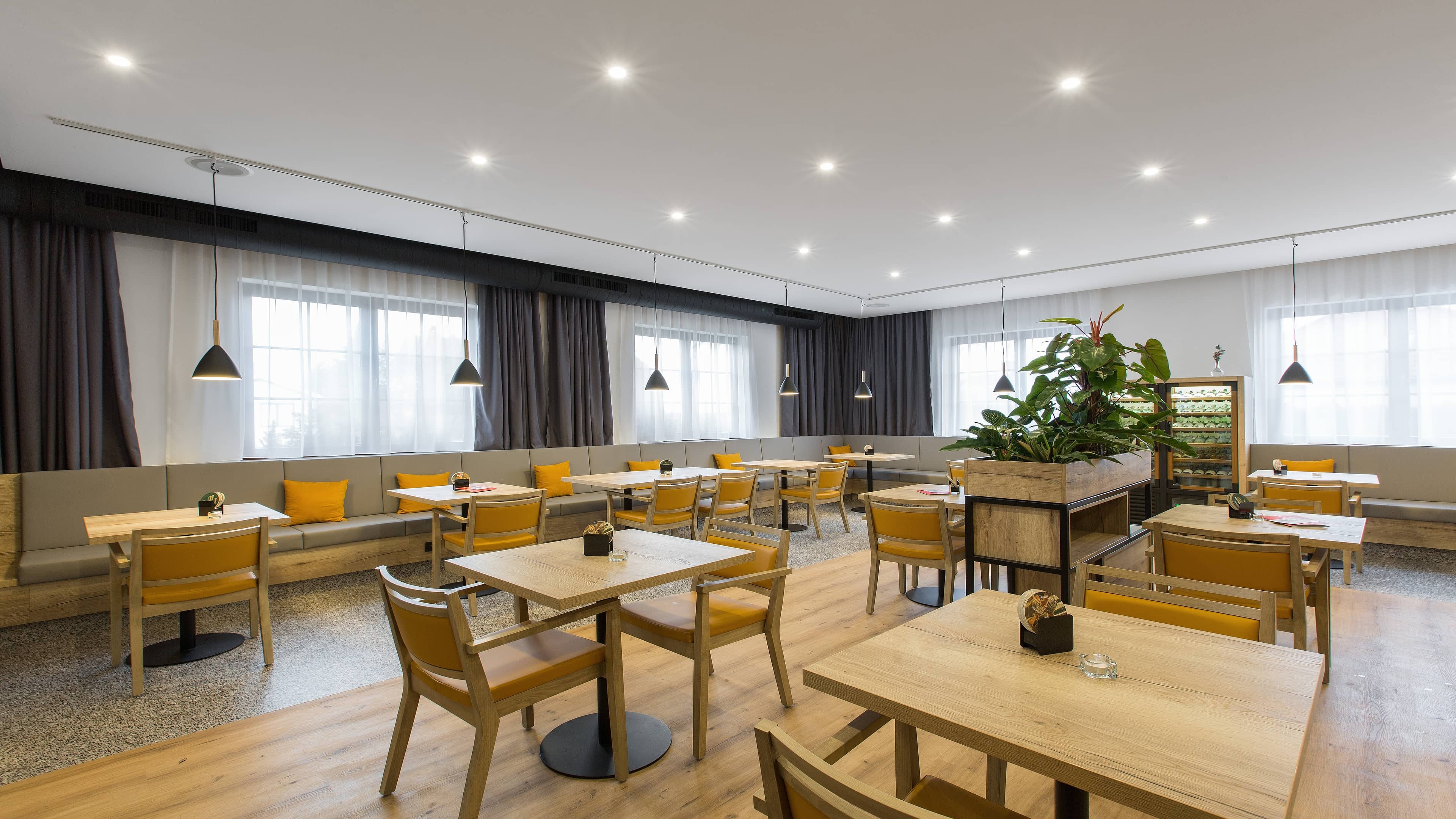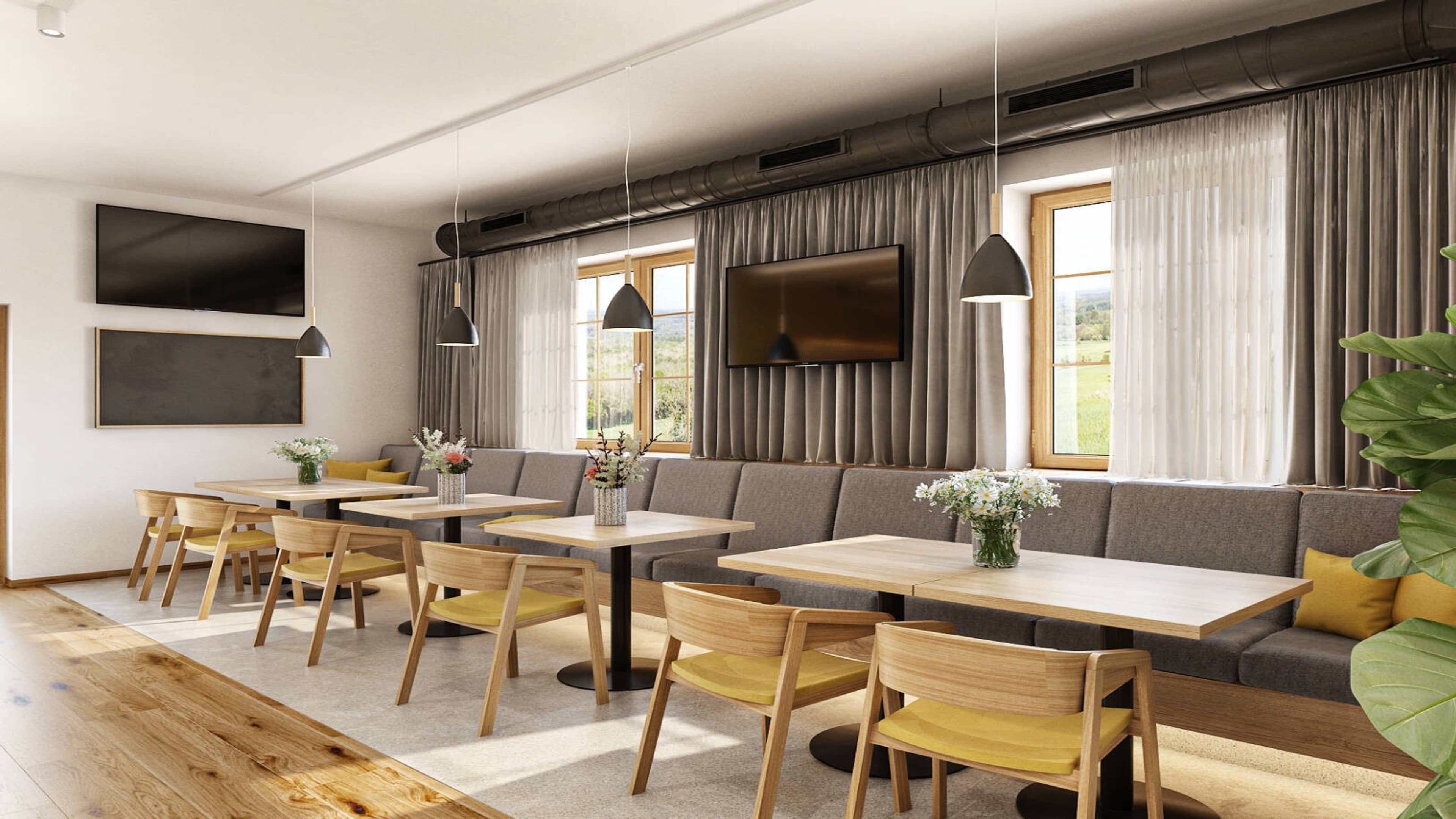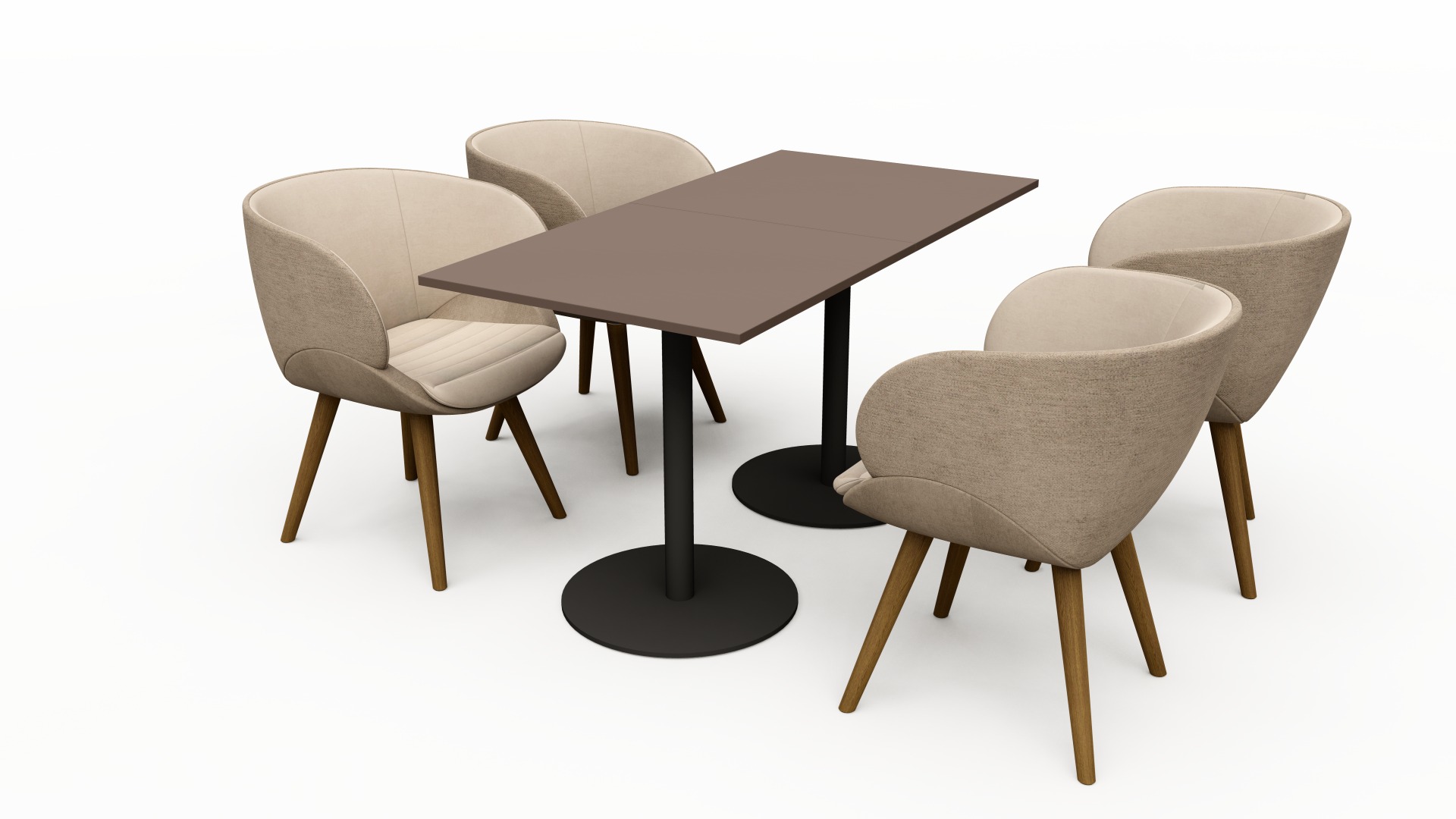 Malý stůl STANDY se čtvercovou deskou a kulatou podnoží je vhodný do firemní zasedačky, jídelny nebo recepce.